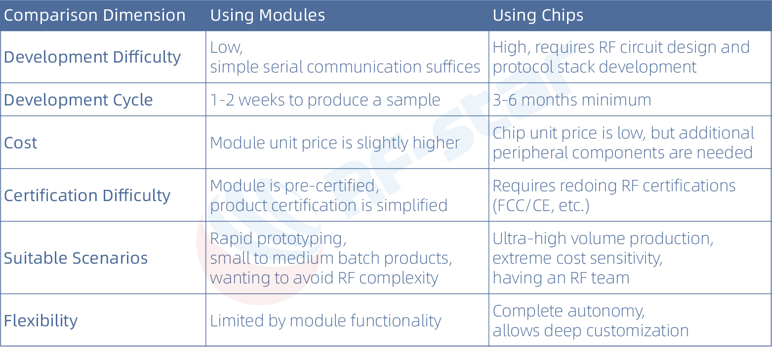 Suggestion: For 90% of IoT products, using a module is more cost-effective. The saved development time and certification costs far outweigh the price difference of the module.