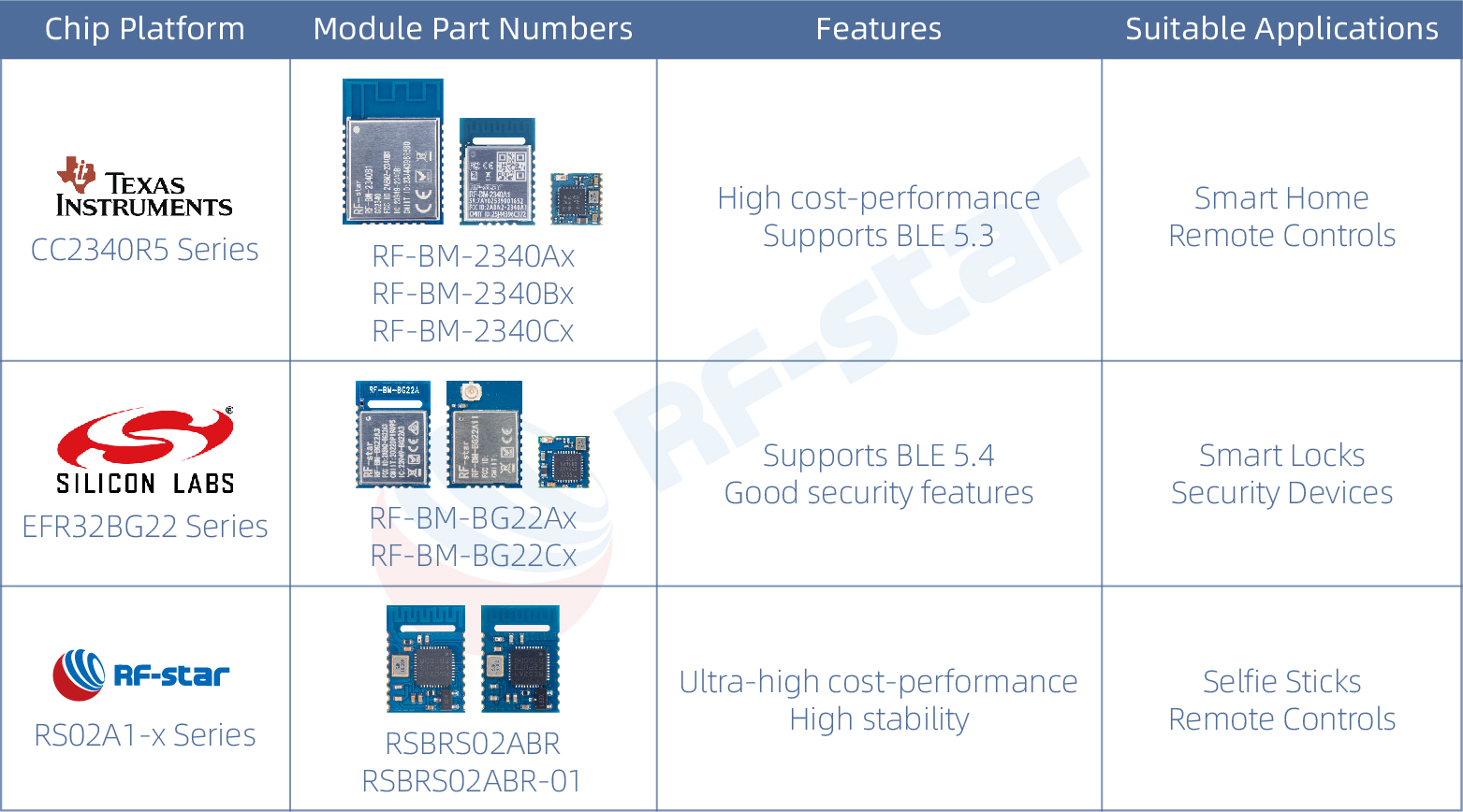 Ⅴ. RF-star Transparent Bluetooth Module Selection Table