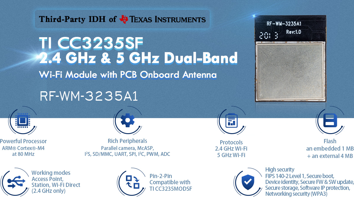 Dual frequency Wi-Fi, Low-power 5G, Compatible with TI CC3232MODASF