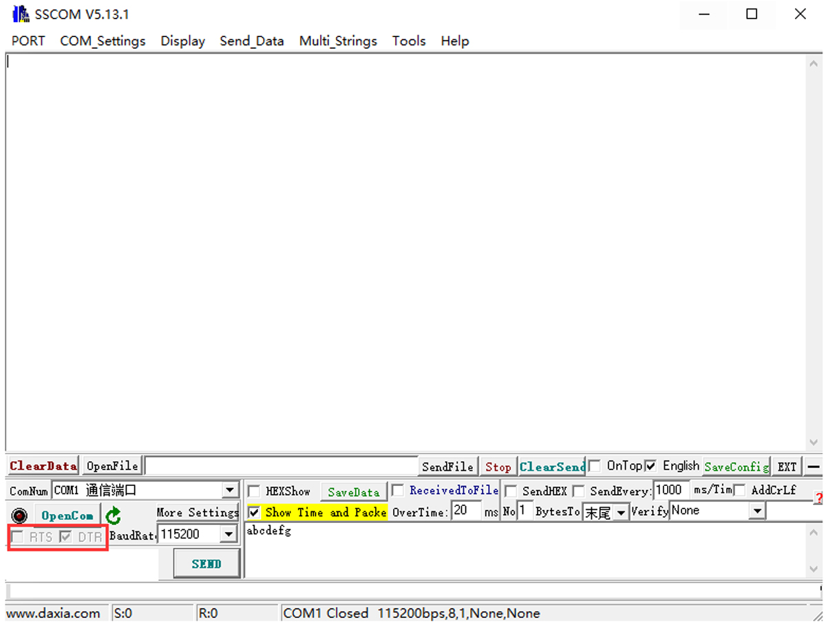 1. Please choose and click RTS and CTS on the UART Assistant (called DTR as well). For example: