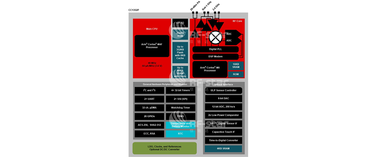 Based on the CC1352P simpleLink™ high-performance multi-band wireless MCU, the Chinese wireless modules manufacturer named RF-star has produced the multi-protocol module RF-TI1352P1 to fit the diversity of applications.